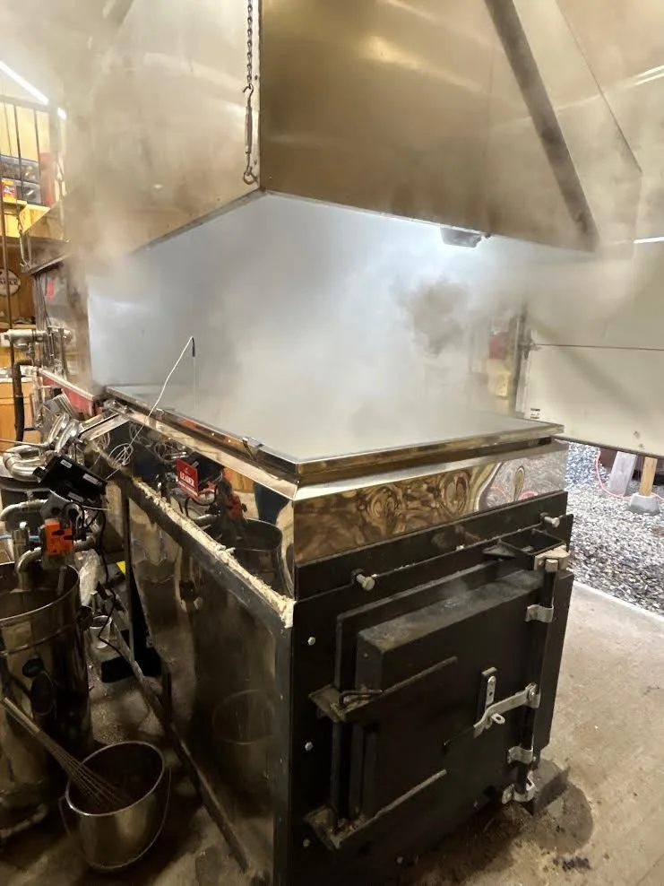 In general it takes our team about 50 gallons of clear, slightly sweet sap in order to make 1 gallon of syrup. We collect the sap and bring it to thour sugarhouse through a series of tubing and pumps. With our nearly 2500 taps, it is no longer practical to collect using buckets like we all did when we started. Sap generally starts to flow when the cold winter daytime temps give way to warmer daytime temps that are above freezing. This change signals the tree to start coming awake and feed the branches above with a sugary solution that feeds the leaf buds and allows the tree to come awake for the coming spring where it will add another growth ring and prep for it all to repeat itself the following year.